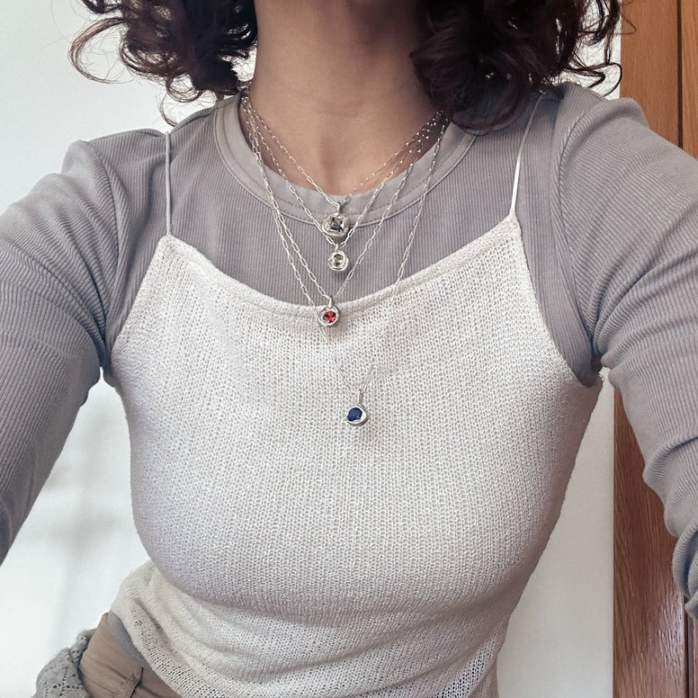 Soleilu es joyería lenta, hecho por una sola persona, pieza a pieza, en España. Por eso muchas joyas existen en unidades muy limitadas y se agotan rápido.