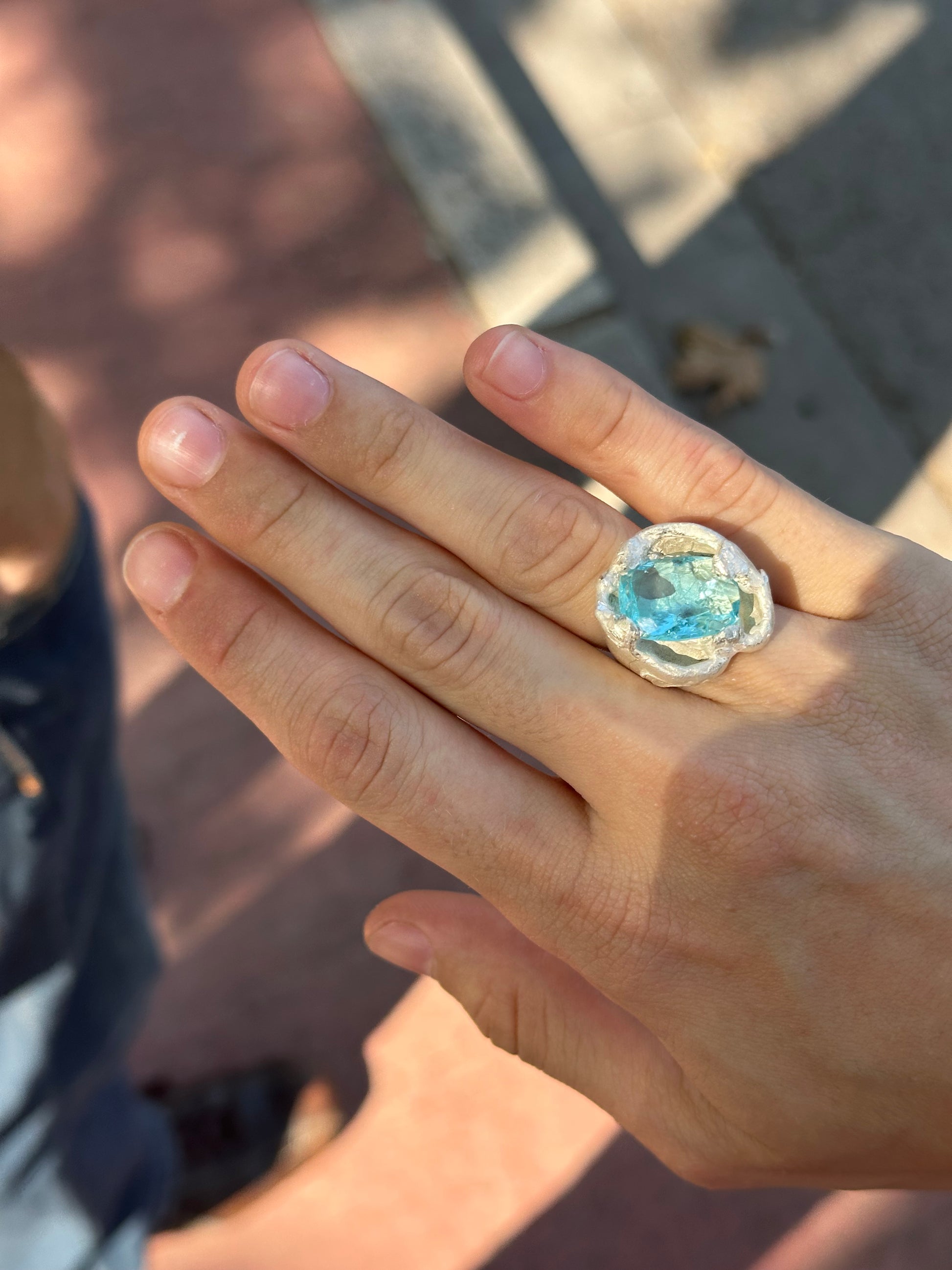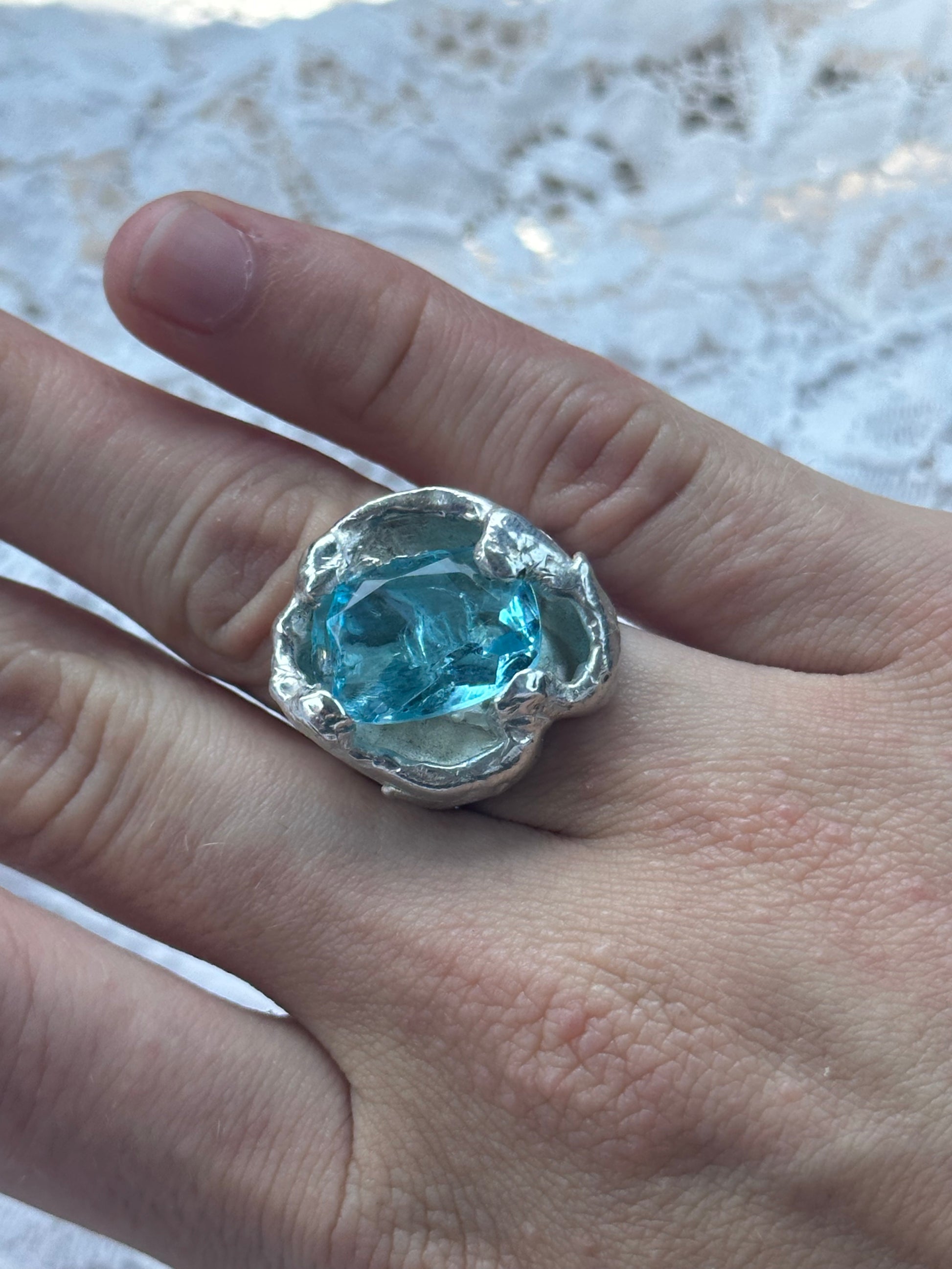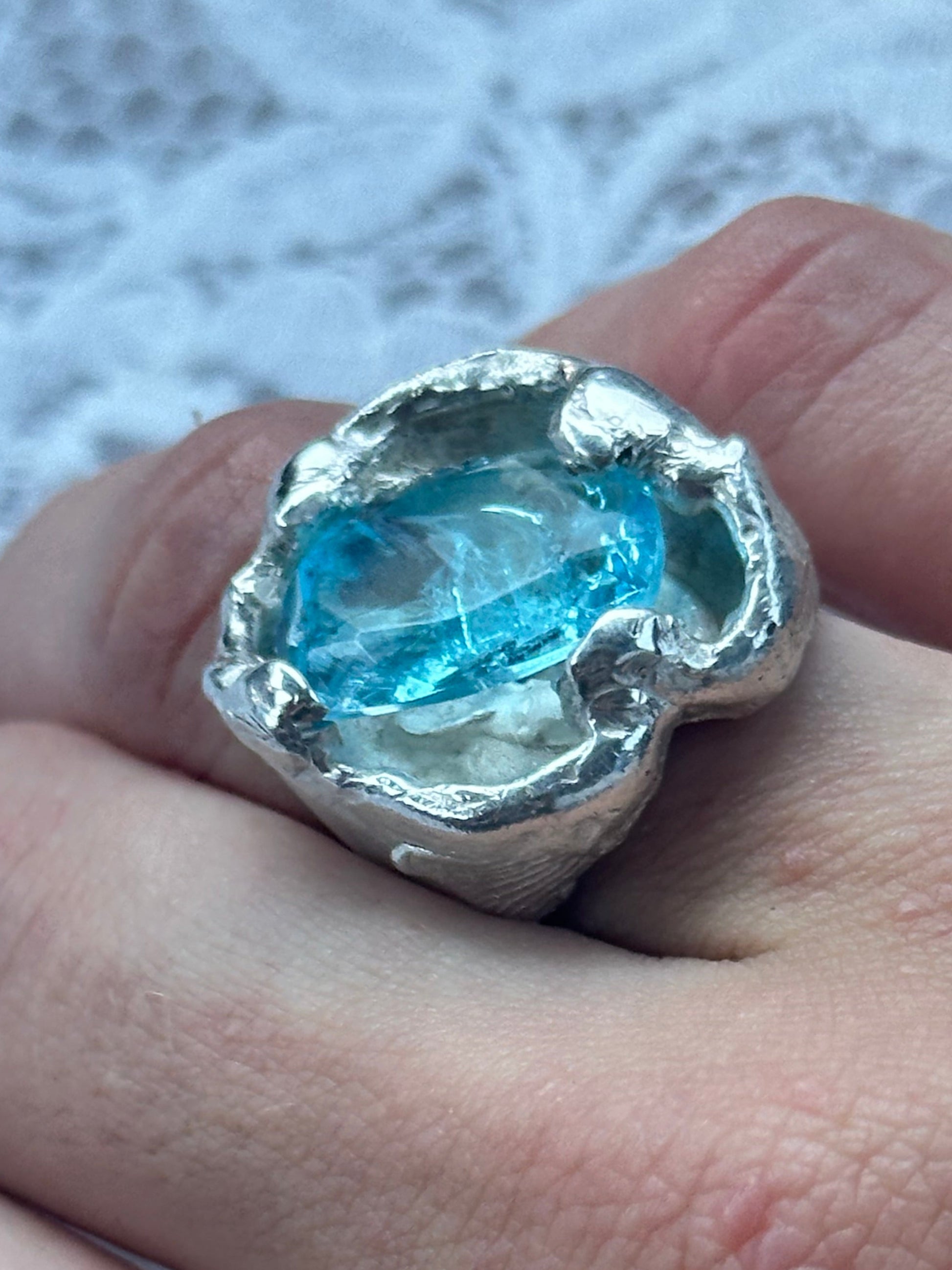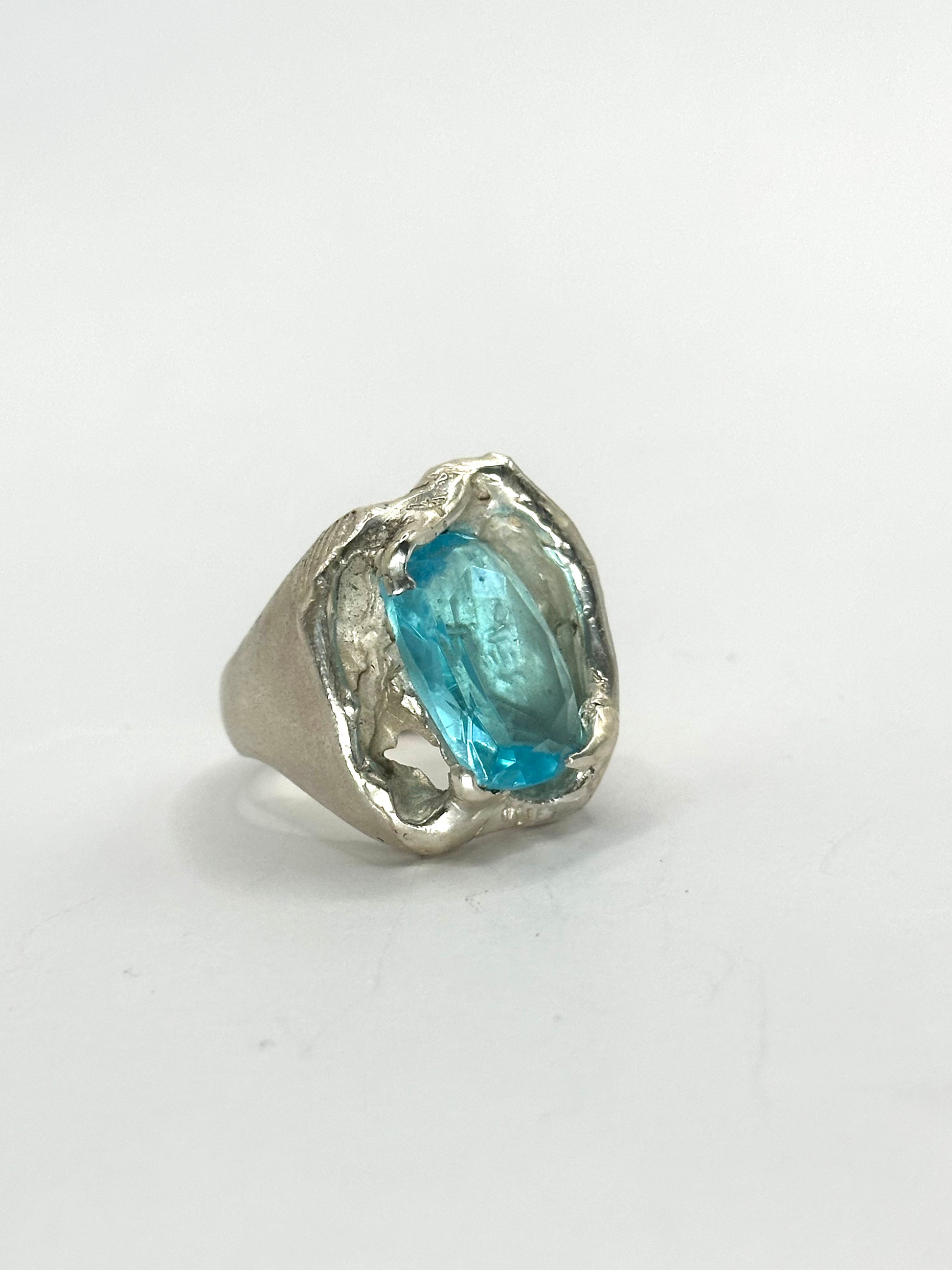 La piscina, anillos hechos uno a uno con cristal azul, todos son diferentes.