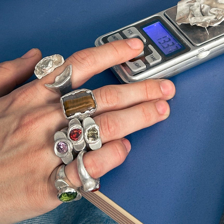 Soleilu es joyería lenta, hecho por una sola persona, pieza a pieza, en España. Por eso muchas joyas existen en unidades muy limitadas y se agotan rápido.