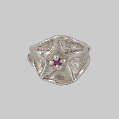 Tú eres mi sol, esta vez con piedra de rubí sintético. El clásico anillo bestseller ahora tiene opciones coloridas.